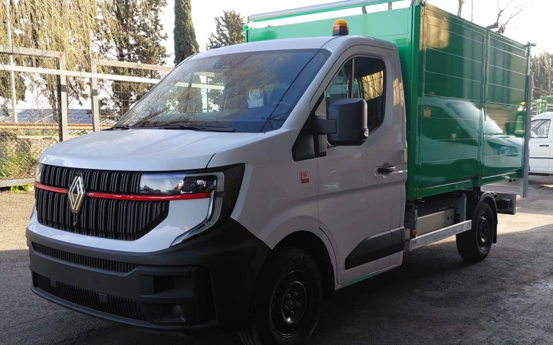 Entregamos a URBASER para Barcelona, 7 nuevas unidades de nuestro volquete brigadas y plataforma elevadora integrales de aluminio. Unidades carrozadas sobre chasis Renault Master eléctricas.