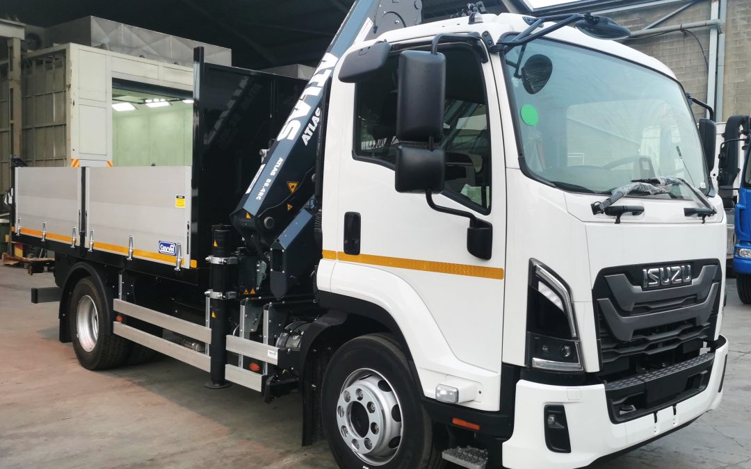 Entregamos a SCAITT este conjunto de grúa ATLAS 88.4RC A4L junto a carrocería basculante carrozado sobre chasis Isuzu de 14Tn de PMA