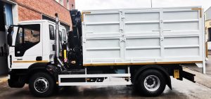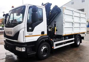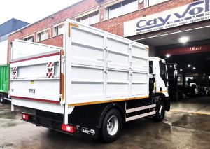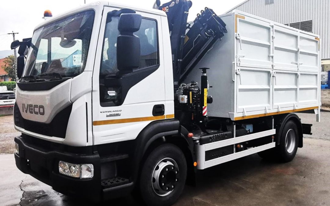 Entregamos a FCC con destino Badalona, varias unidades de conjuntos grúa CAYVOL HC 90 A3 + caja basculante con alzas y puerta elevadora TAP CAYVOL. Las grúa van equipadas de funciones hidráulicas en punta, radio mando y pulpo con rotator.