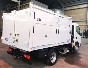 Entregada a CLECE esta nueva unidad de grúa CAYVOL HC 33 A2 y volquete integral de aluminio carrozada sobre chasis Fuso aportado por AUTOLICA.