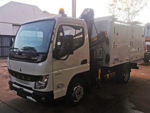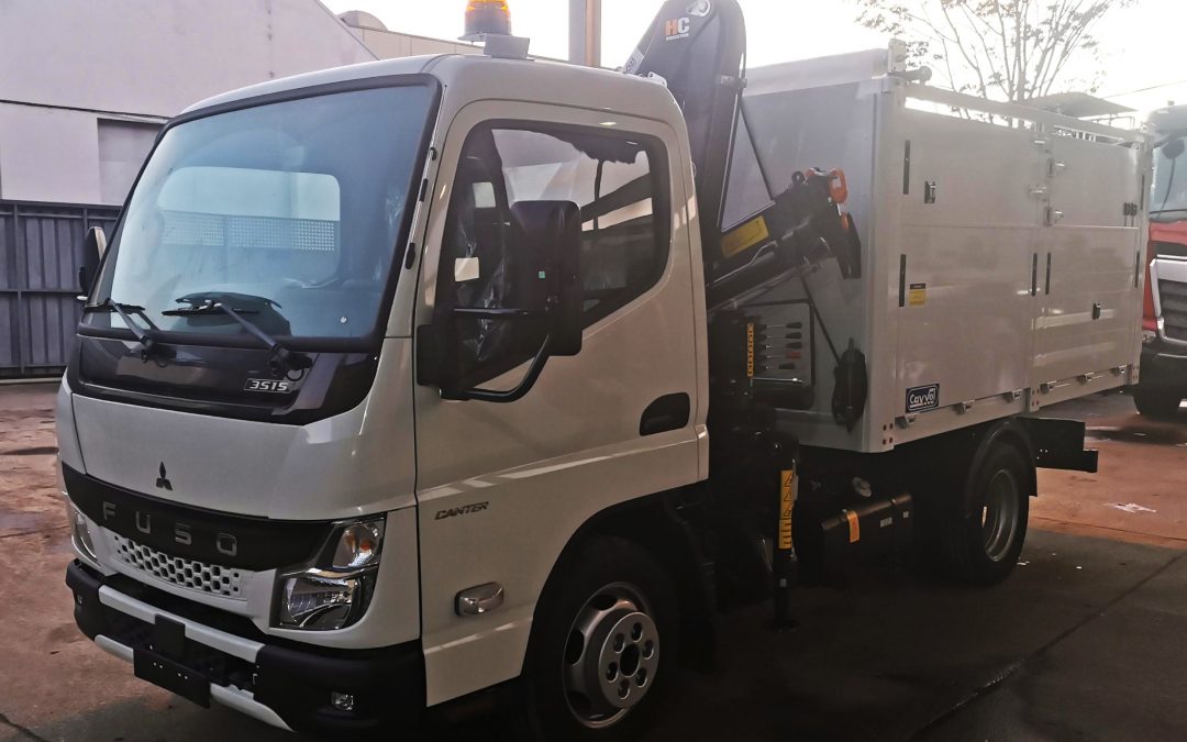 Entregada a CLECE esta nueva unidad de grúa CAYVOL HC 33 A2 y volquete integral de aluminio carrozada sobre chasis Fuso aportado por AUTOLICA.